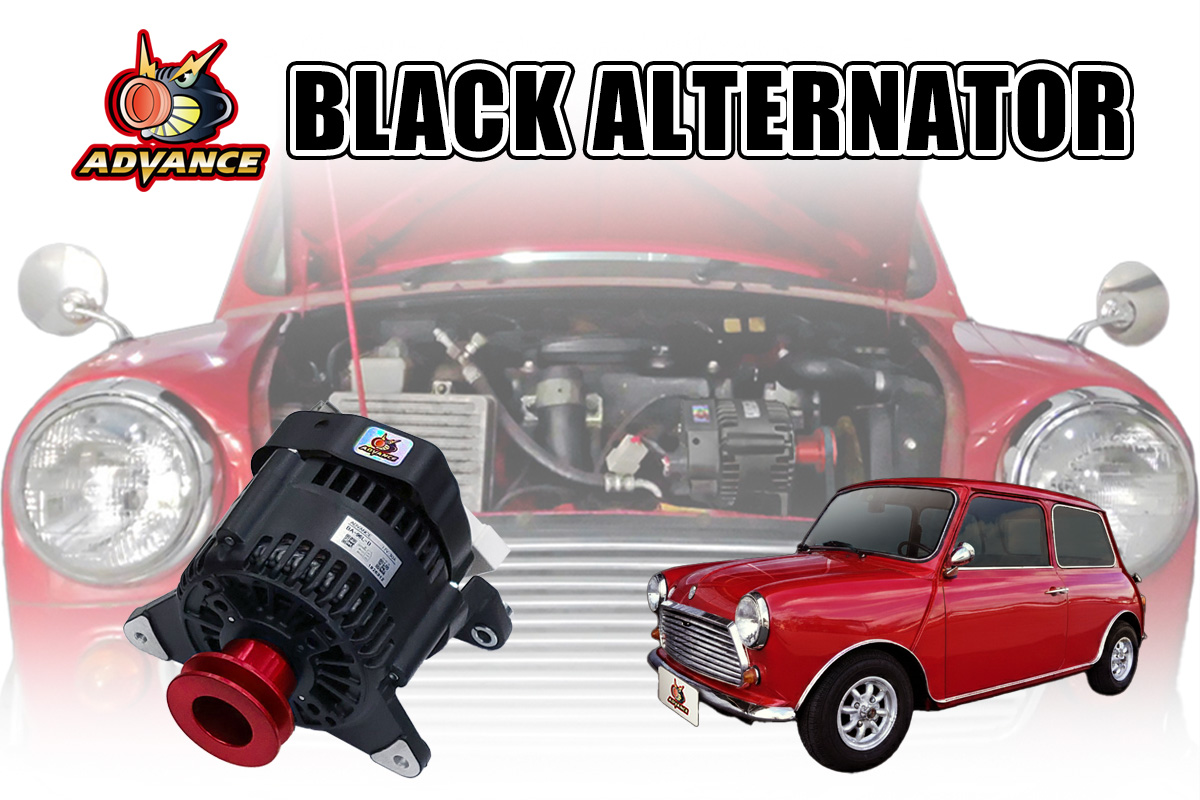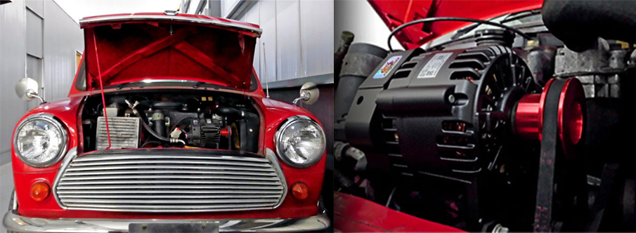 ミニはエンジンルームの目立つ位置にオルタネーターが付いているので、ドレスアップ効果もあります。